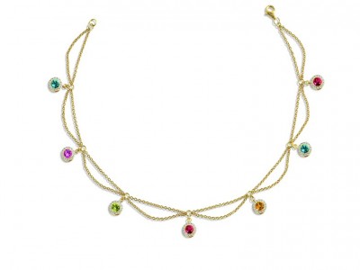 خلخال كلاسيكي يتميز بشكله الدائري مُصاغ من الذهب عيار 18 قيراطًا ومُرصع بالألماس والأحجار شبه الكريمة